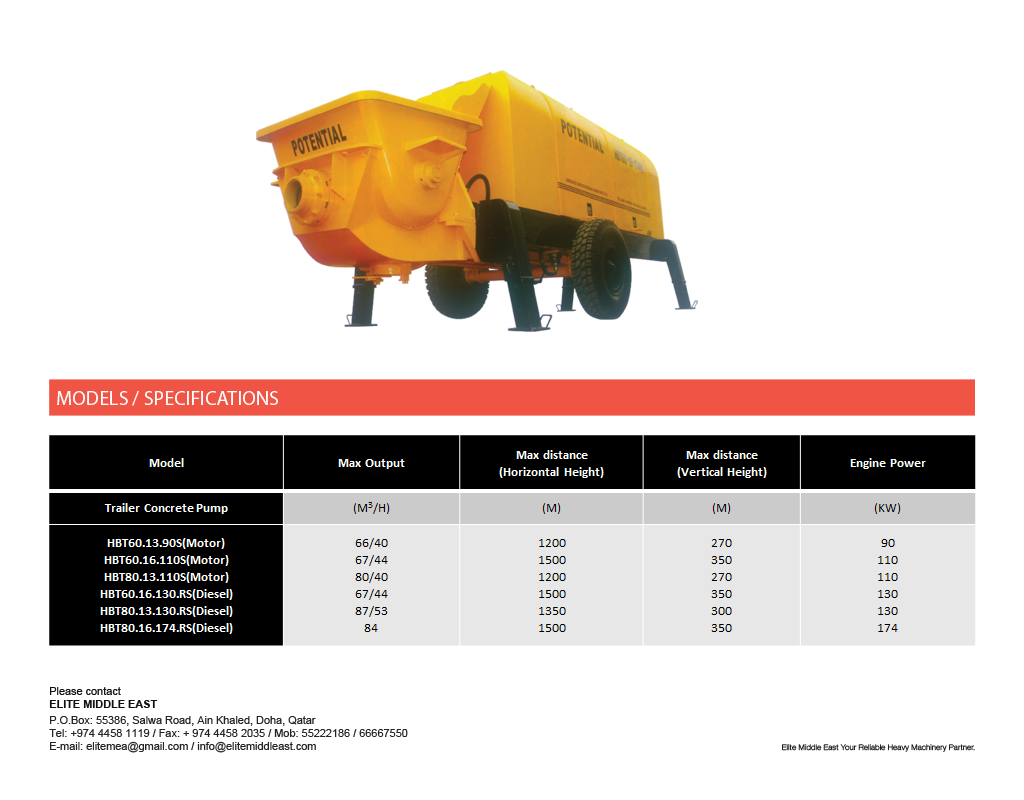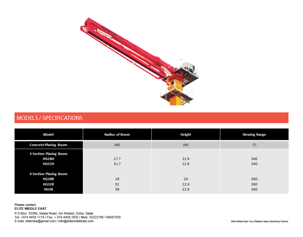 Elite Middle East Concrete Machinery PRODUCTS Concrete Machinery Download Concrete Machinery Pdf Specifications Truck Mounted Concrete Pump Concrete Placing Boom specs Trailer Concrete Pump ▲▼ Newsletter subscribe to our newsletter to receive news, updates,and special offers by email.